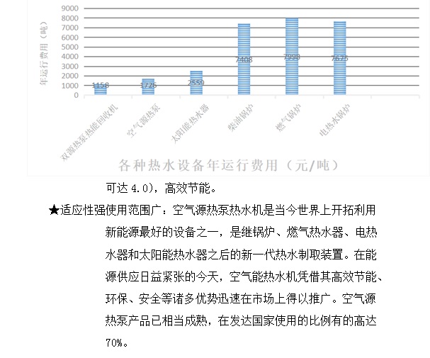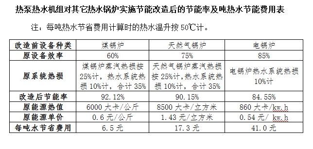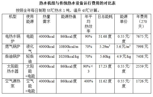 熱水機組與傳統熱水設備運行費用的對比表