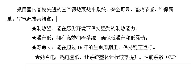 • 采用國內高校先進(jìn)的空氣源熱泵熱水系統,安全可靠、高效節能、維保簡(jiǎn)單。