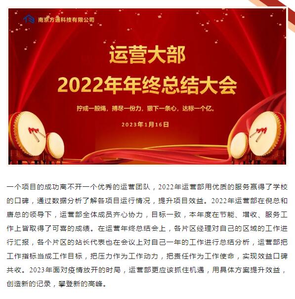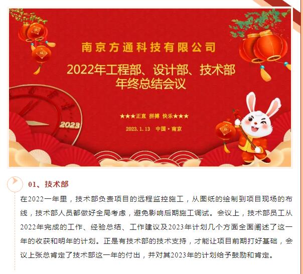 各部門(mén)年終總結已落下帷幕。日月春暉漸,華光萬(wàn)物新。2022方通科技虎躍難關(guān),碩果累累。2023讓我們攜手同心,共譜華章。祝愿大家